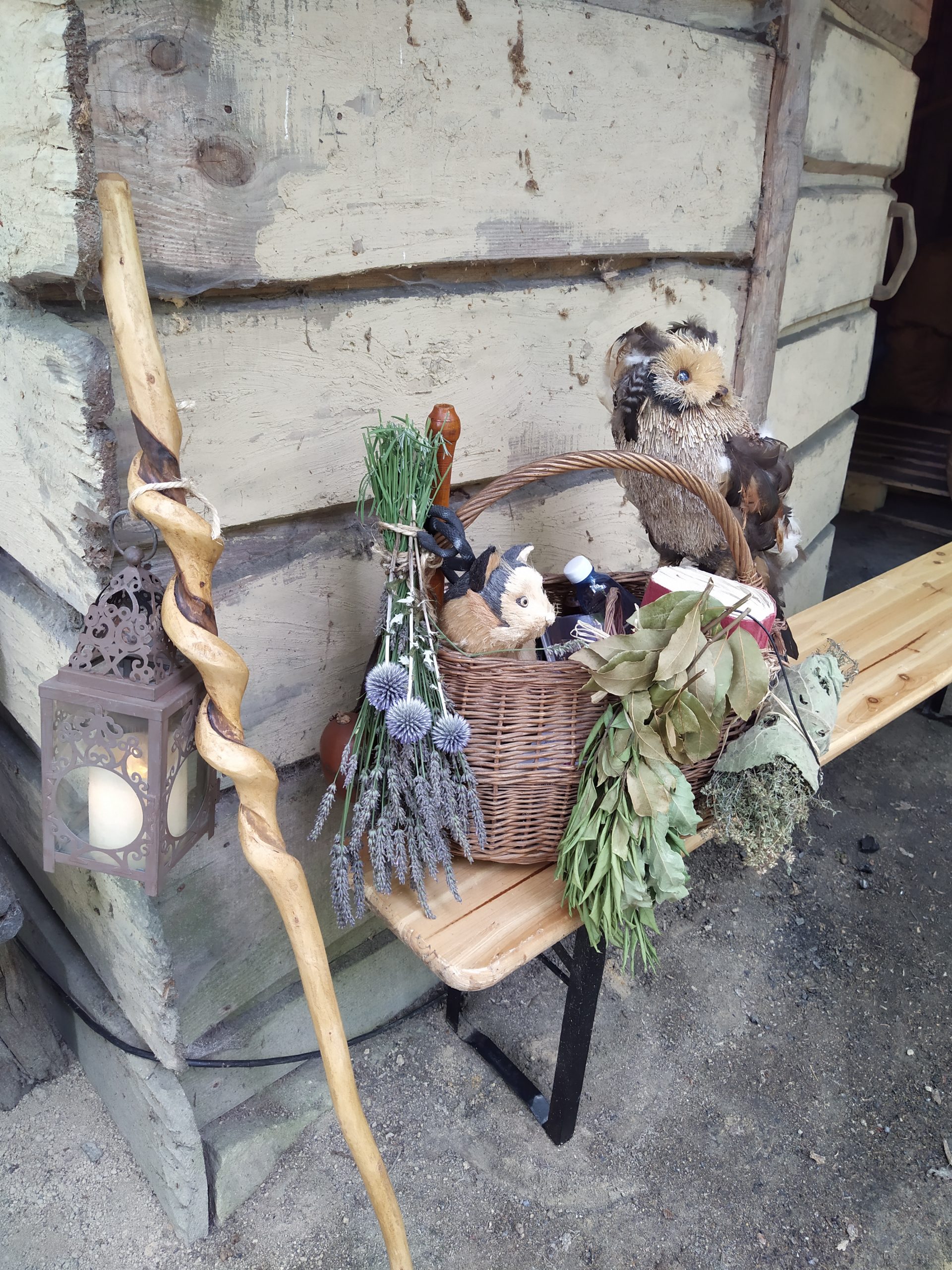 Ma tenue de guérisseuse pour les fêtes médiévalesEn forêt de ChauxMon panier et ma canne de guérisseuse